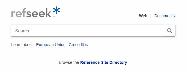 RefSeek recherche plus de 5 milliards de documents, dont, entre autres, des pages web, des magazines, des livres, des encyclopédies, des articles et des journaux.